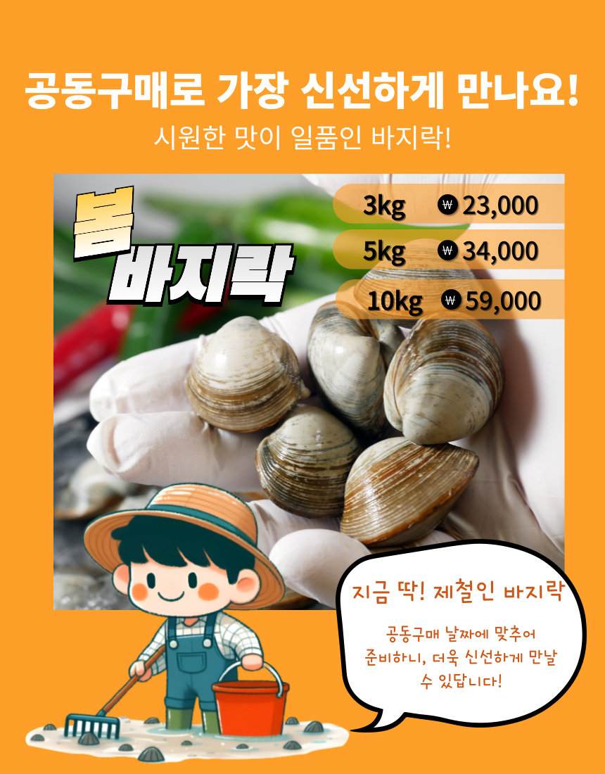 꼼꼼하게 검열해서 선별한 맛있는 봄 바지락을