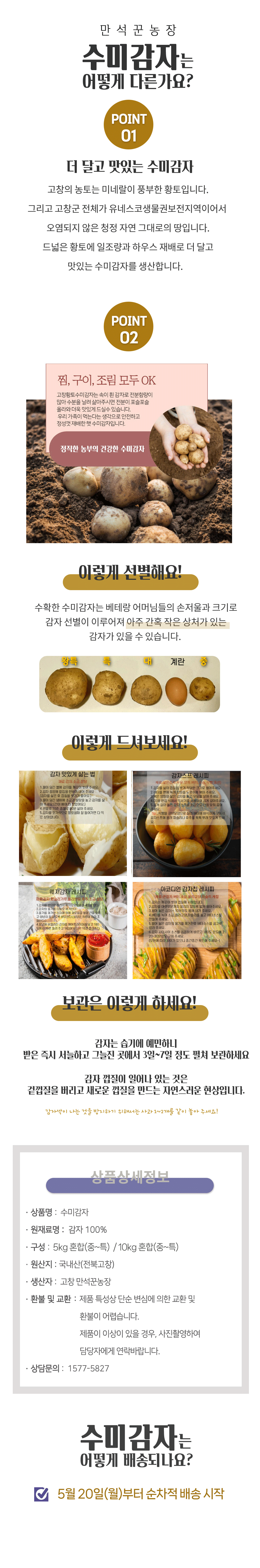 [공동구매] [택배상품] 2024년 첫 수확 고창 황토밭 포슬포슬 수미감자 혼합사이즈 5kg [30세트 한정판매]